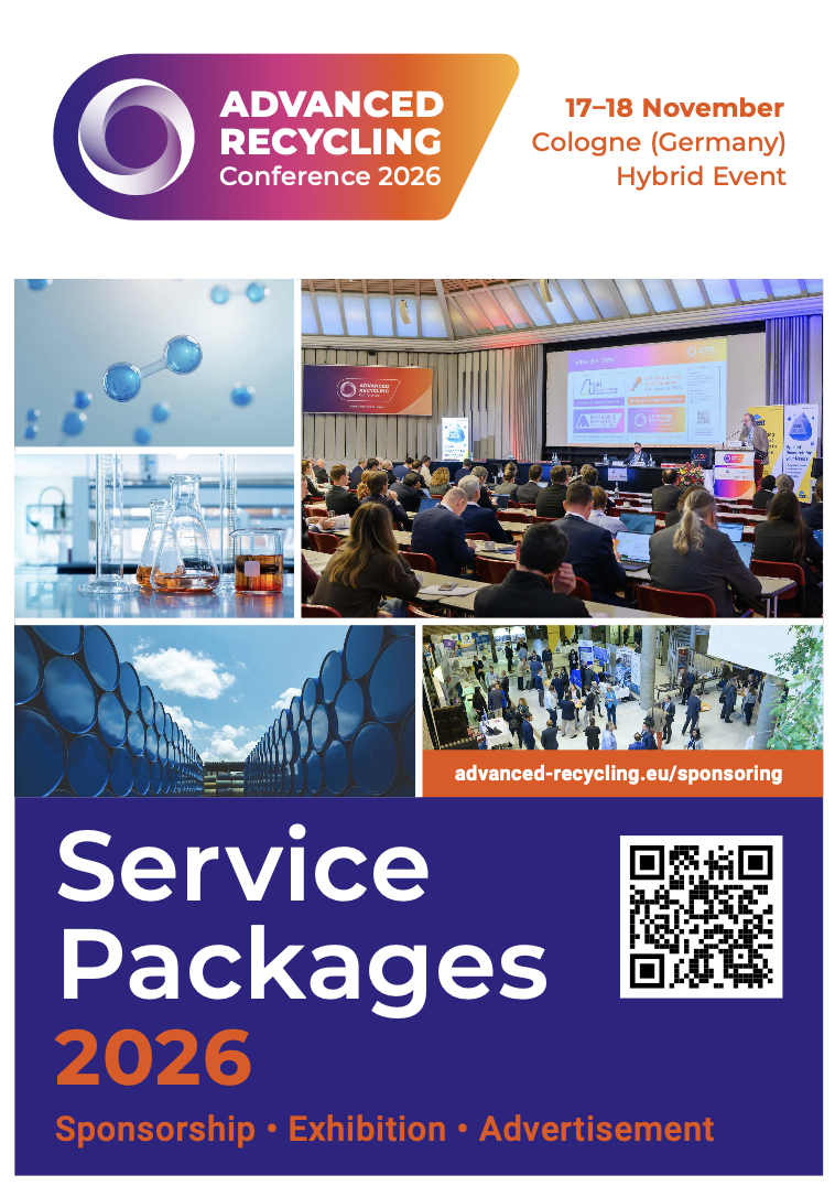 Taking place on 17-18 November 2026 in Cologne, Germany and online, the Advanced Recycling Conference 2026 showcases the latest developments in advanced recycling technologies, recycling-based renewable chemicals, building-blocks, monomers, and polymers. The unique concept of presenting novel advanced recycling solutions and related topics at one event guarantees a comprehensive and exciting conference experience, covering technologies such as extrusion, dissolution, solvolysis, enzymolysis, pyrolysis, thermal depolymerisation, gasification, and incineration with Carbon Capture Utilisation (CCU) as well as pre- and post-processing technologies and digital solutions.